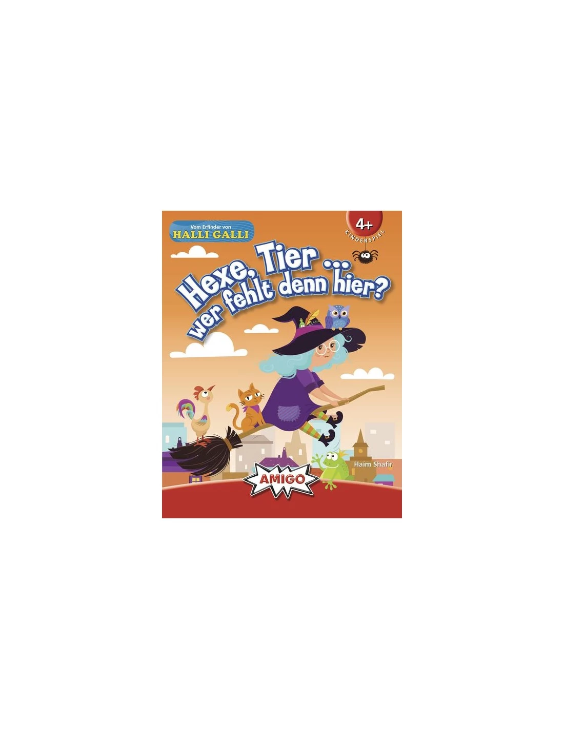 To start Hexe, Tier … wer fehlt denn hier?, divide the cards evenly among all players, with these cards lying face up on the table in front of each player. Each card shows a young witch flying on a broom, with one or more animals accompanying her.