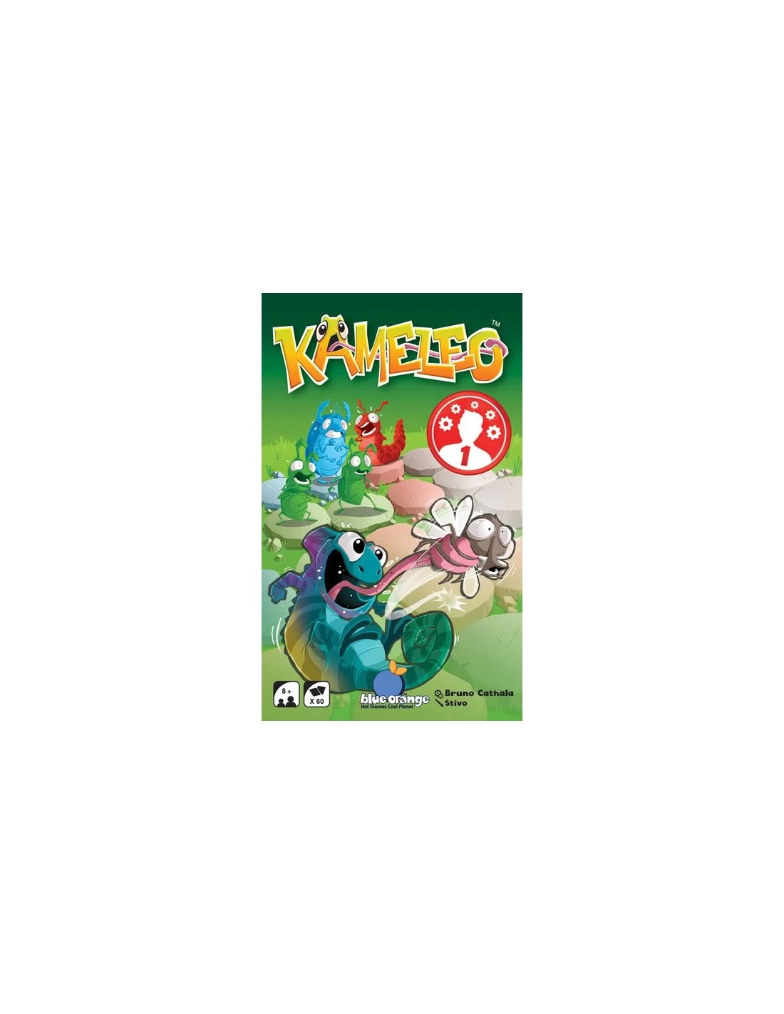 Kameleo can also be played as a two-player game. Lay out the insects on a challenge card, then the first player chooses where to place the chameleon token. Players take turns eating a type of insect and moving the chameleon. Whoever can’t eat on their turn loses the round, and whoever first loses three rounds loses the game.
