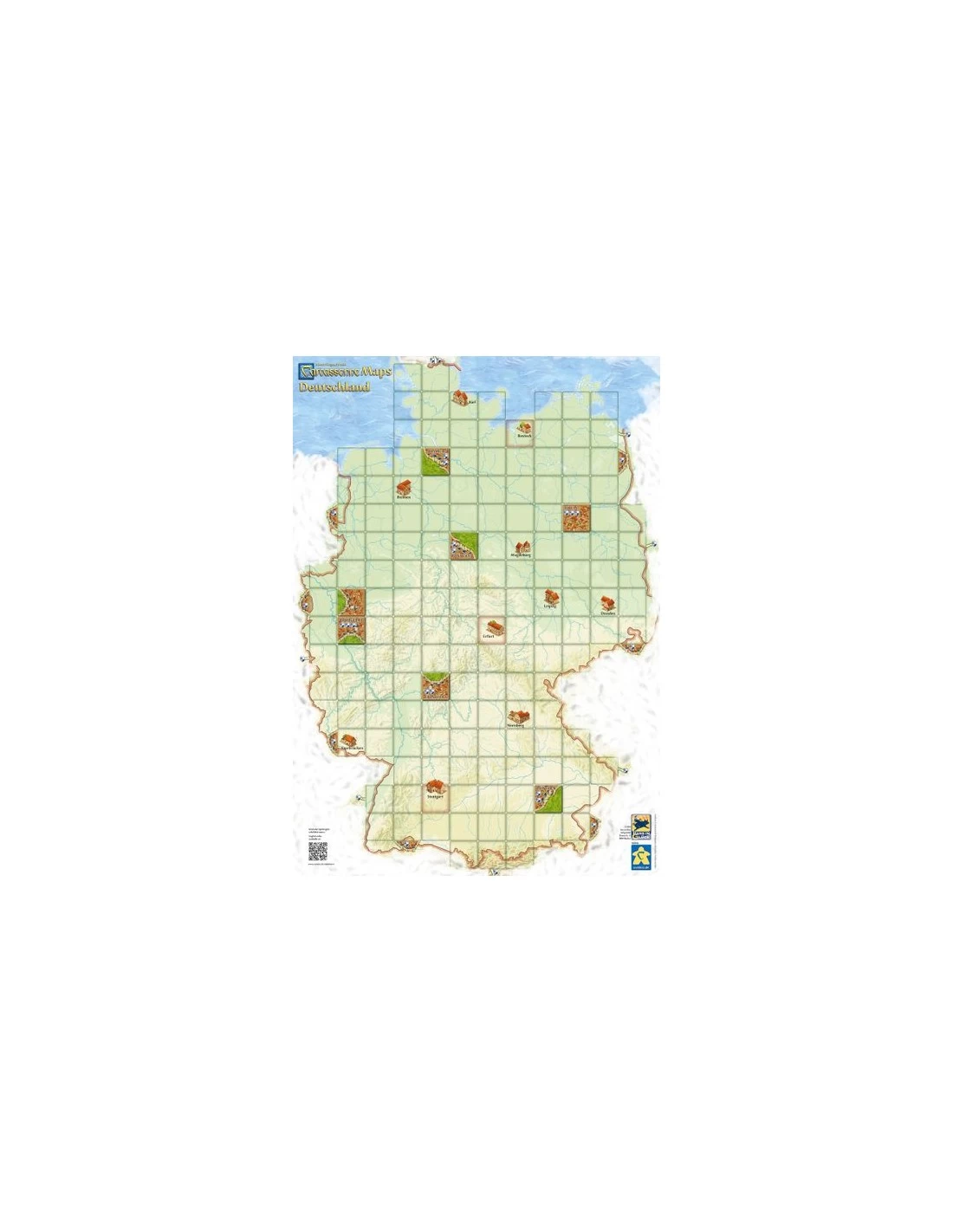 With Carcassonne Maps we offer you a new possibility to play Carcassonne. With Carcassonne Maps: Deutschland you can use your tiles and meeples in Germany, build German cities and influence the course of important roads. There are also new ways to score points, e.g. by winning the scoring of a big city or by connecting streets to neighboring countries.