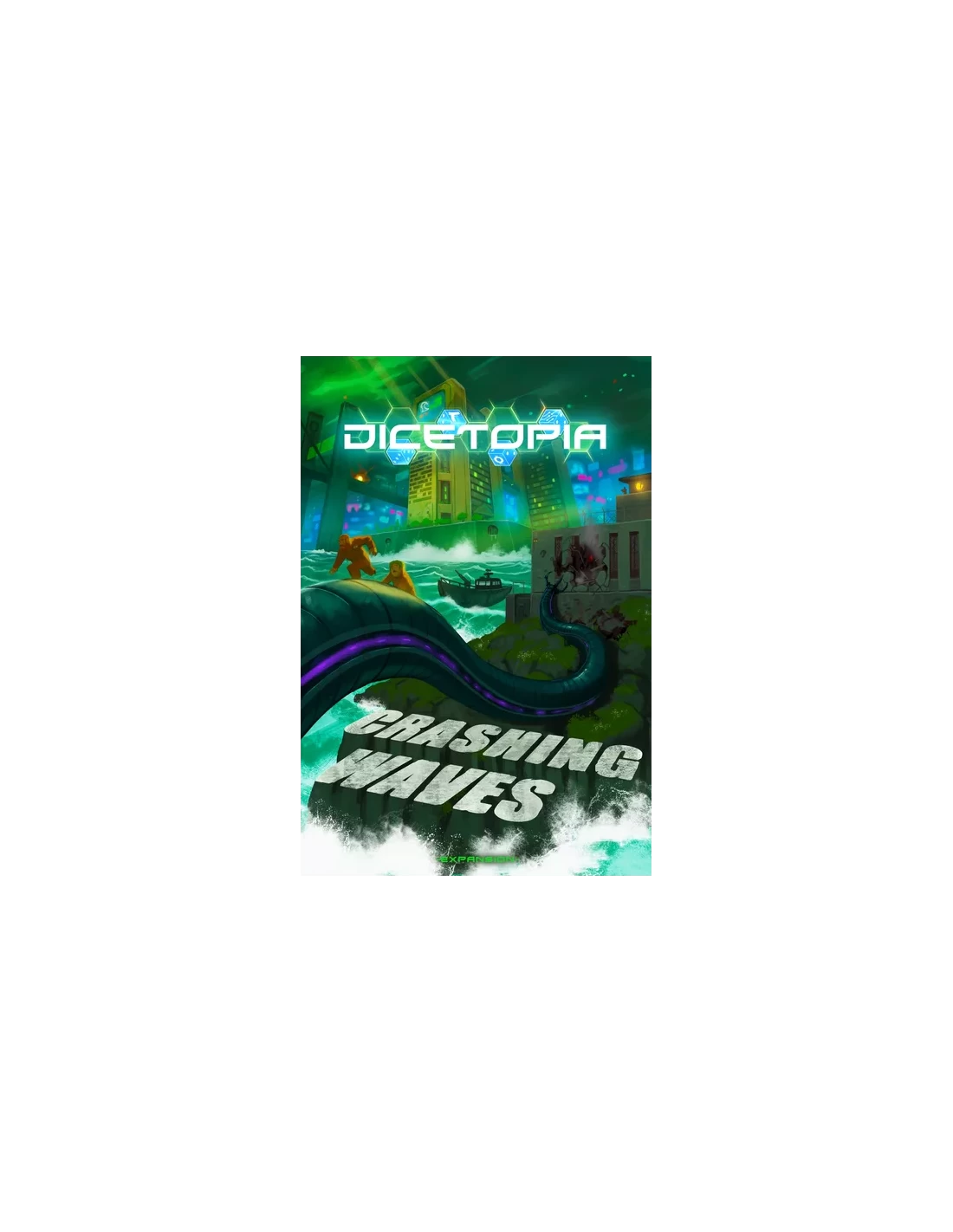 Crashing Waves is the final expansion for Dicetopia that introduces a new unsettling dock area with three new locations adding more strategies and possibilities! Visit the Crashing Waves Stock Exchange to manipulate the value of dice resources. Break out a fellow thug from Cutthroat Prison for an extra turn and a stronger area control presence. Or drop by the Molotov Market to trade dice values!