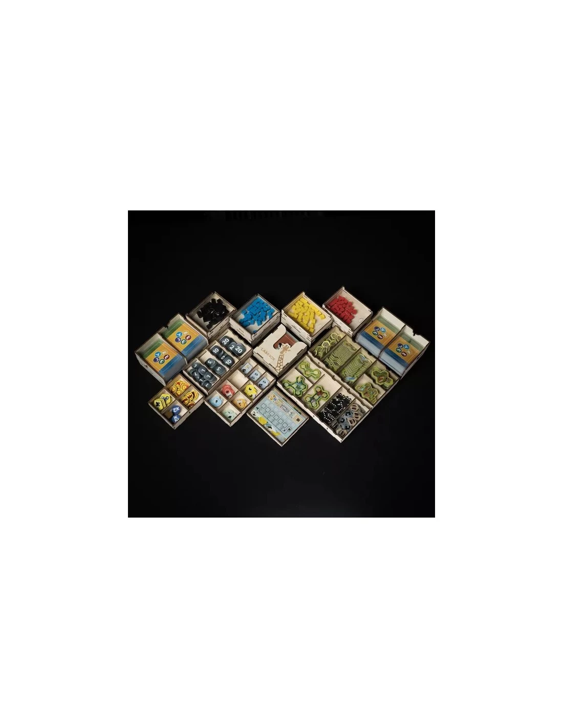 With the Ark Organizer, you can give your game a nice, compact storage system that can significantly speed up the setup and cleanup time, so that more time remains to the best part, building your zoo, which can be quite lengthy anyways. The storage elements are easy to handle and can also be used during gameplay, relieving your gaming table of scattered components and taking further the zoo theme with the decorations on the boxes.