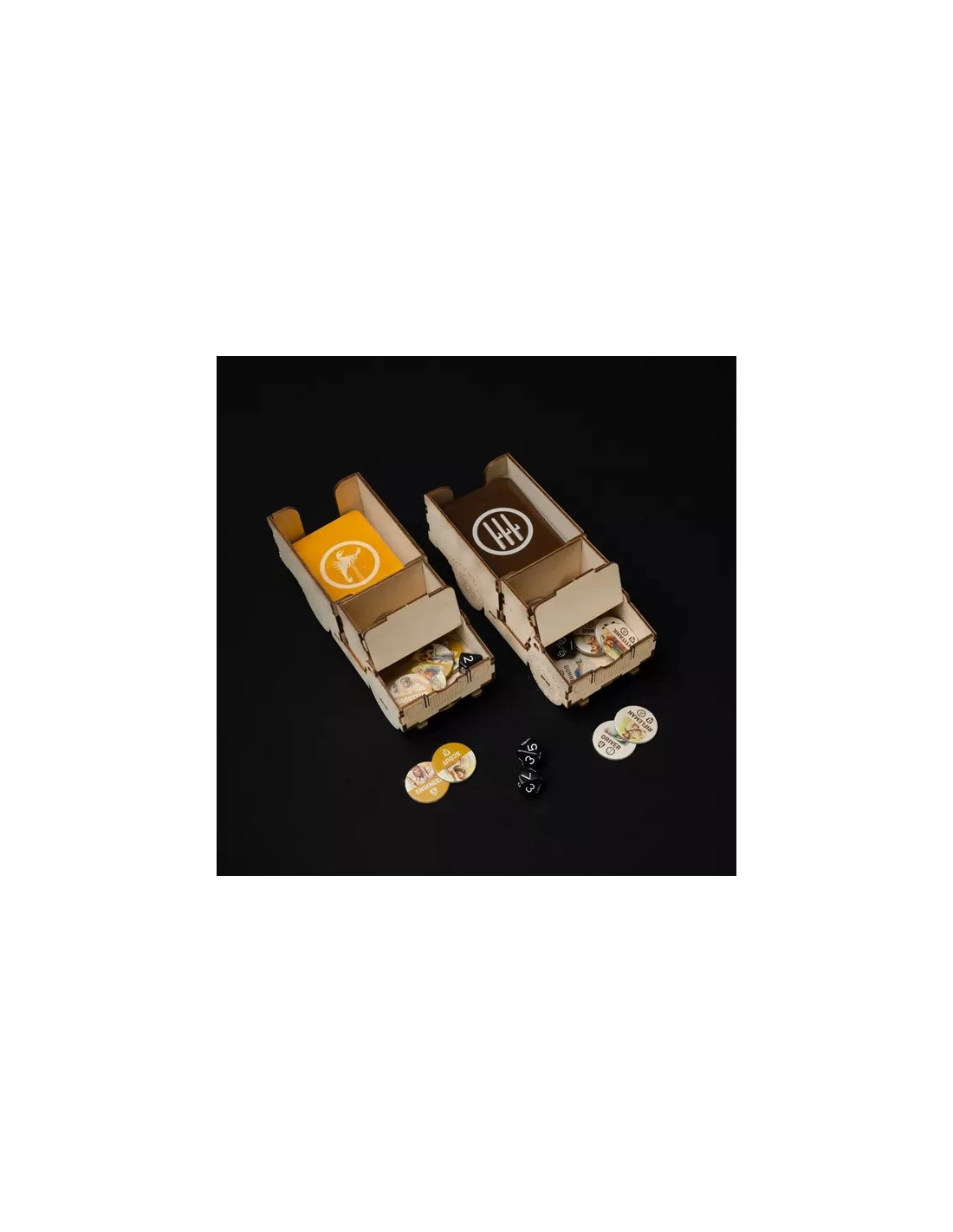 – two unique, army truck shaped containers for player components