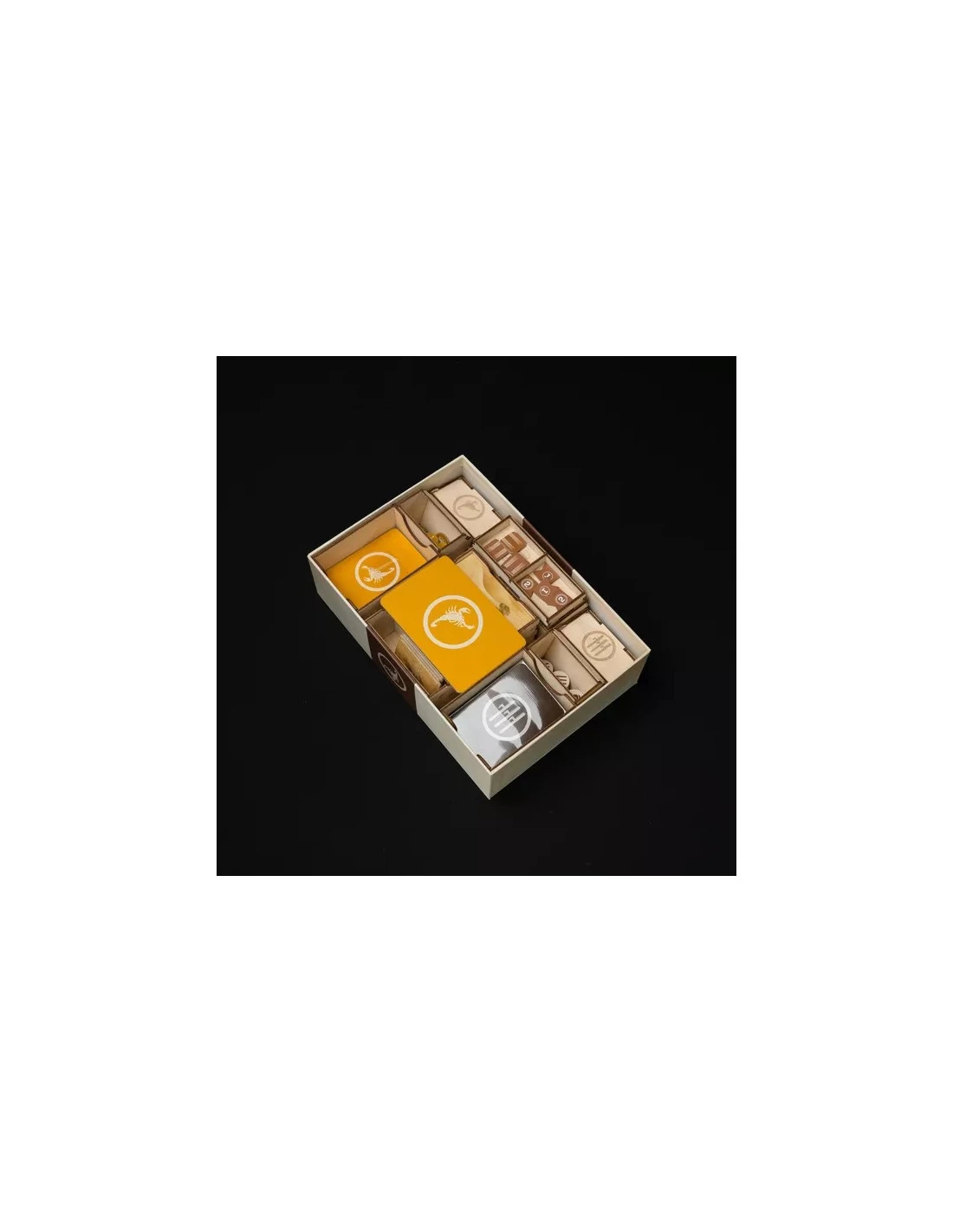 The key to a successful attack is orderliness and this is what you can achieve by adding our organizer to your gamebox. Build the scenario easily by pulling out landscape tiles and structure markers from their holder, keep the various markers at hand in their designated tray, grab your army truck with your troop ready and start combat.