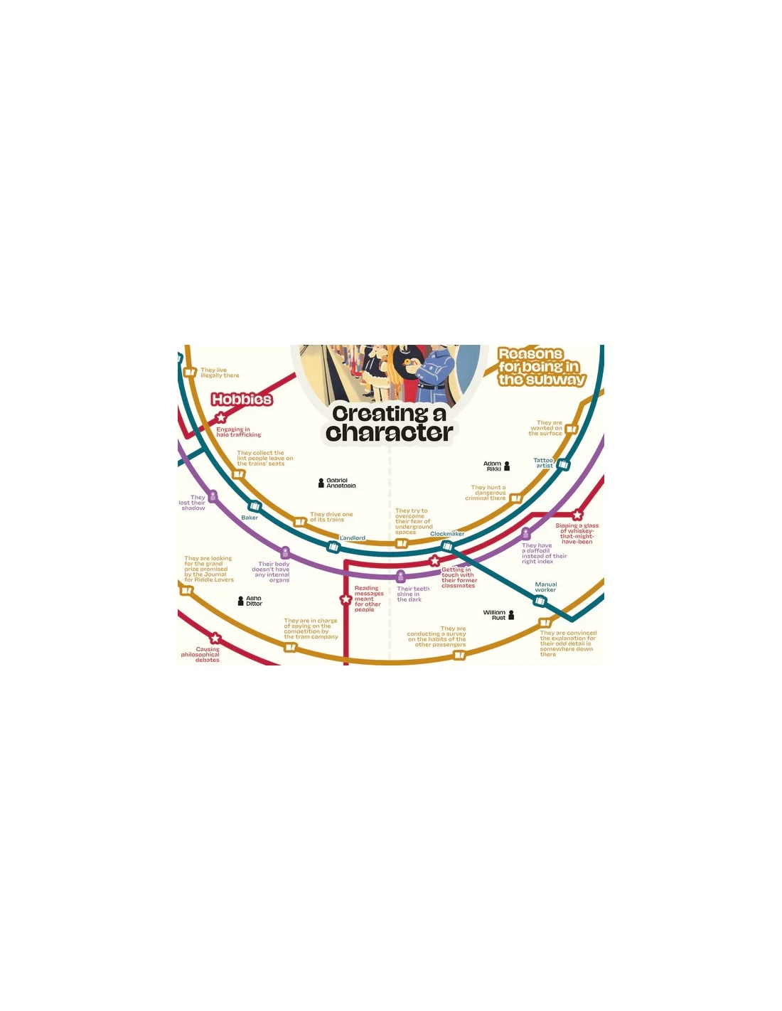 You can get an idea of what it looks like to run a game of Meanwhile, in the subway by having a look at the following generators for passengers and subway stations.