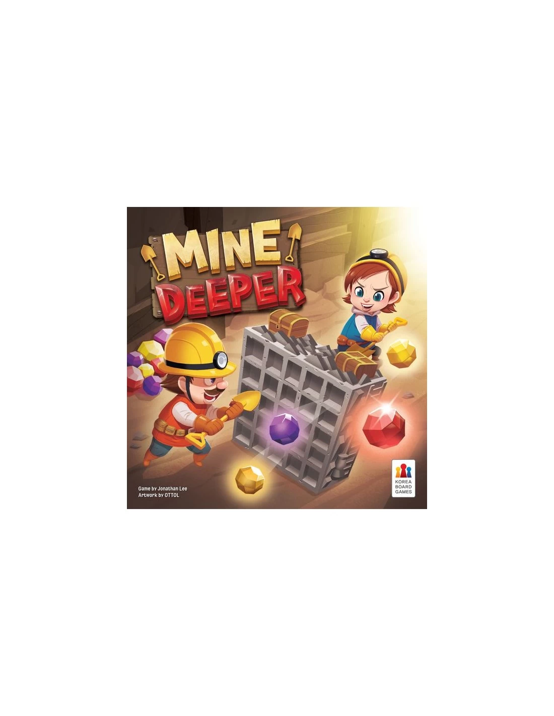 In Mine Deeper players become miners competing with each other to find the 5 precious gems first. The game is played with a 3D wall piece placed between the players, with each player facing one side of the wall.