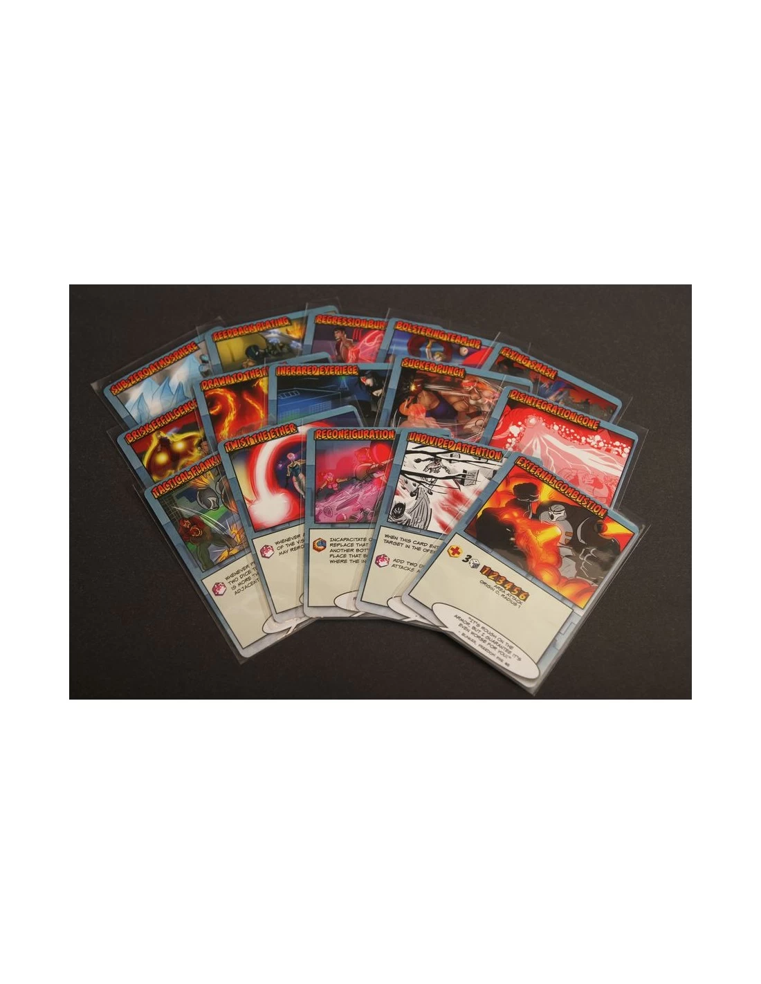 Each character has a deck of 6 Power Cards that they select from on their turns. These extra Power Cards give each hero and villain additional capabilities.