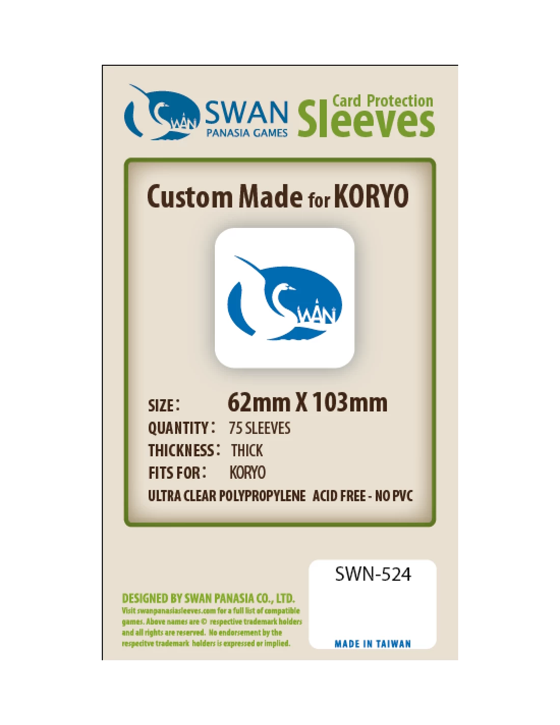Swan: 62mm X 103mm: Sleeves Koryo Thick (75)