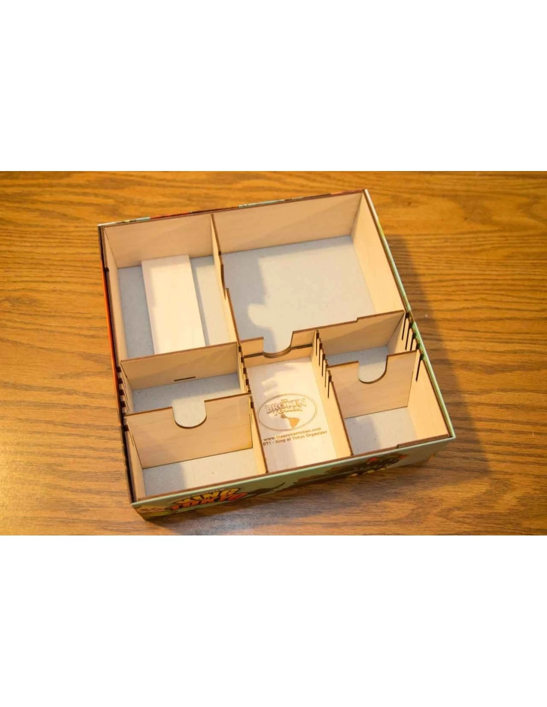 Get organized with our box organizer designed specifically for King of Tokyo. This organizer will keep your cards, dice, tokens and characters all in their proper place during transport. A removable tray containing the tokens and energy cubes can be taken from the box and placed on the table. Adjustable dividers allow for storing sleeved or unsleeved cards.