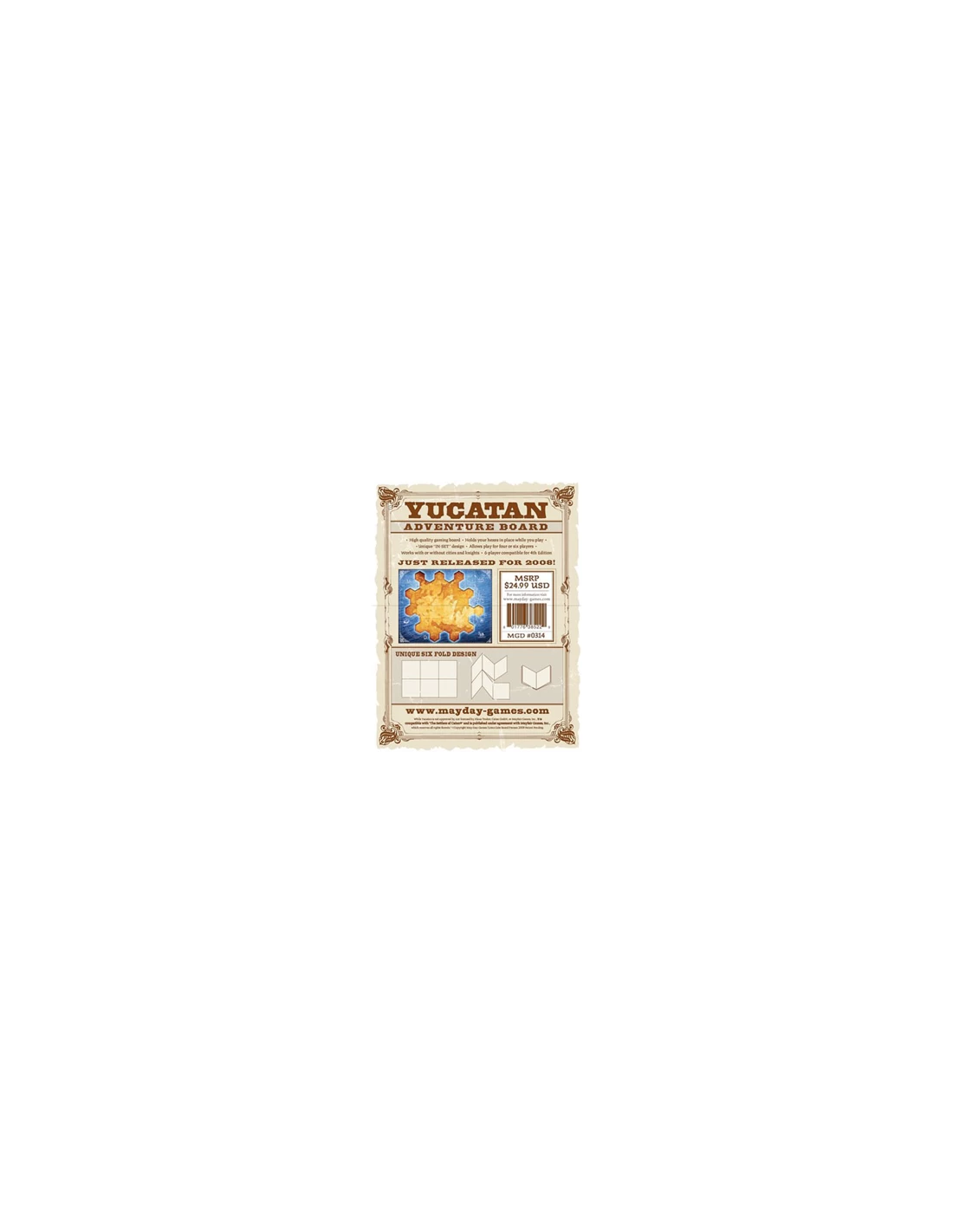 Het Yucatan bord is een dik (in 6-en) gevouwen bord voor het plaatsen van catan tegels. Geschikt voor het catan spel tot 6 spelers.